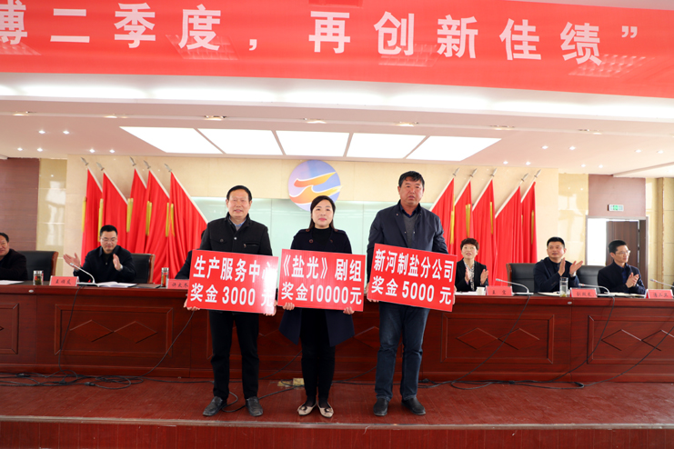 公司董事长、党委书记、总经理李国文、常务副总经理古浩光、副总经理许太冬、党委副书记、纪委书记、工会主席王宏、副总经理王顺友、总经理助理刘殿龙、杨守明、潘二卫前台就座,各单位副职级以上人员,机关全体管理人员,日晒制盐公司全体班组长,受表彰单位、班组和先进个人代表参加了会议。