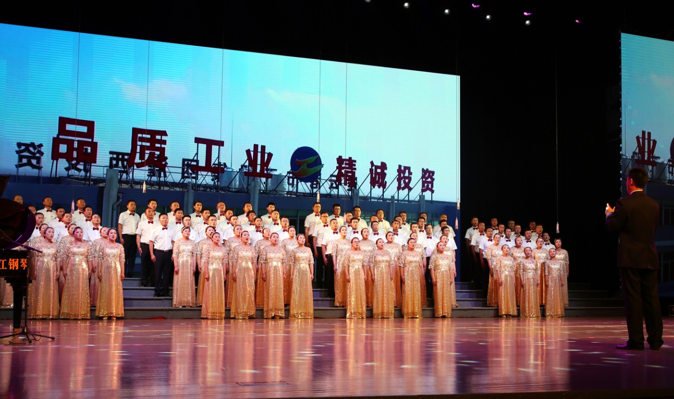 “风在吼,马在叫,黄河在咆哮……”嘹亮的歌声在市艺术中心舞台上响起, 6月28日下午,半岛平台网站登录入口_半岛(中国)公司2019年“感党恩、颂祖国、赞工投”大合唱比赛在此隆重举行,灌西公司百人合唱团获得二等奖,半岛平台网站登录入口_半岛(中国)党委书记、董事长杨龙为灌西合唱团颁发奖杯。