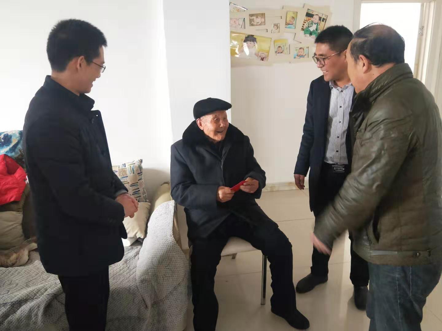 在邵佃成家中,大家与老人拉家常,了解日常饮食起居和身体状况,祝愿老人幸福安康,健康长寿。据了解,已有百岁高龄的邵佃成,是公司年龄最大的党员,生于1921年,有着近60年党龄,建国前参加工作,为祖国的建设做出了伟大的贡献。