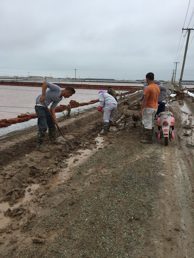近日虽然阴雨连绵,给盐业生产带来了不利影响,但因为连日降雨使得土层松软,却给新河制盐“天沟”工程创造了有利时机,新河制盐分公司员工不等不靠,上下齐心,充分发挥盐场主人翁意识,用自己的实际行动为实现全年目标贡献力量。(新河制盐 邱利民)