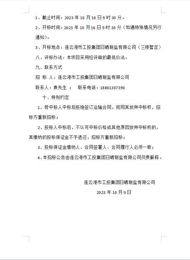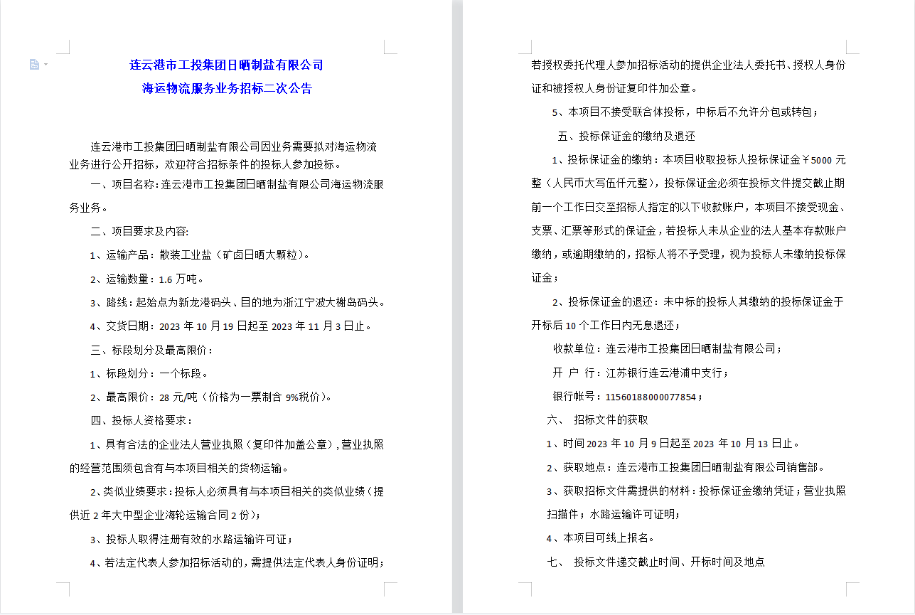 连云港市工投半岛平台网站登录入口_半岛(中国)日晒制盐有限公司 海运物流服务业务招标二次公告