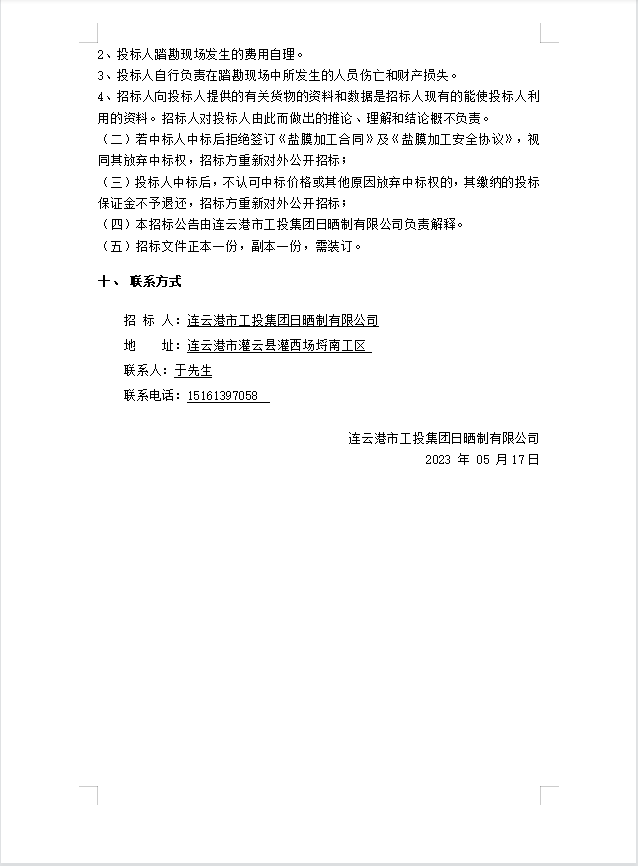 连云港市工投半岛平台网站登录入口_半岛(中国)日晒制盐有限公司盐膜压合加工招标公告