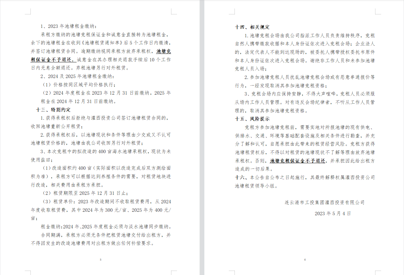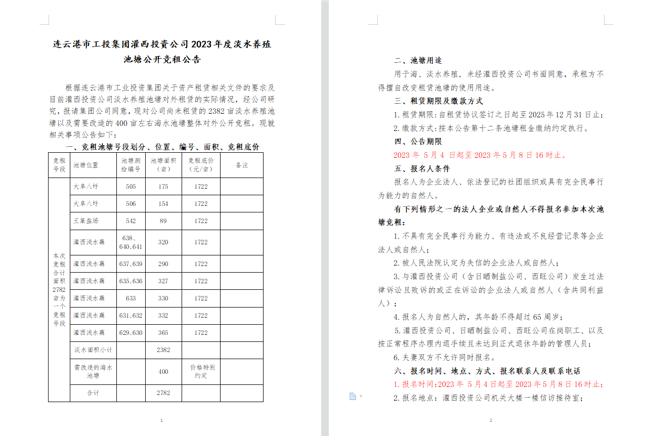 连云港市工投半岛平台网站登录入口_半岛(中国)灌西投资公司2023年度淡水养殖池塘公开竞租公告