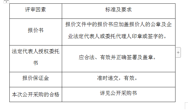 2、评审委员会将根据以下标准对各报价人进行初步评审,有一项不符合要求的,作否决报价处理,不进入详细评审。