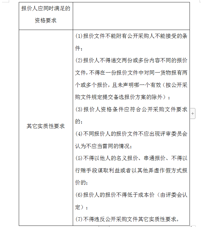 1、报价人提交的报价文件应符合公开采购文件的规定和要求。