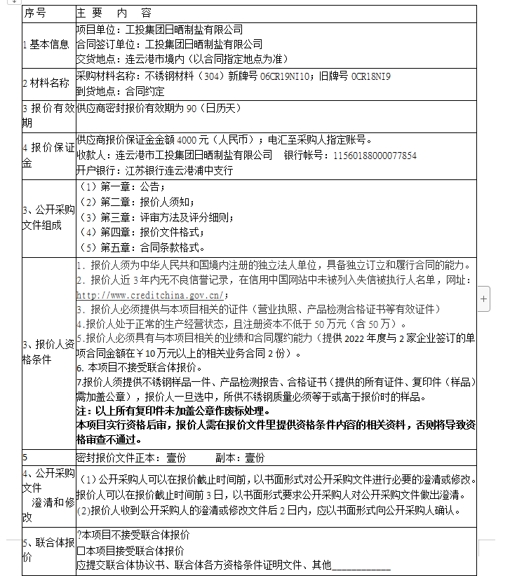 报价保证金接收人:连云港市工投半岛平台网站登录入口_半岛(中国)日晒制盐有限公司。