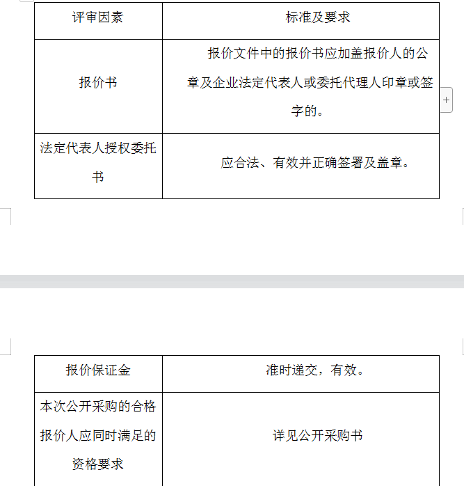 2、评审委员会将根据以下标准对各报价人进行初步评审,有一项不符合要求的,作否决报价处理,不进入详细评审。