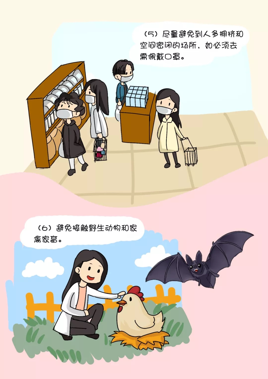 (5)尽量避免到人多拥挤和空间密闭的场所,如必须去需佩戴口罩。