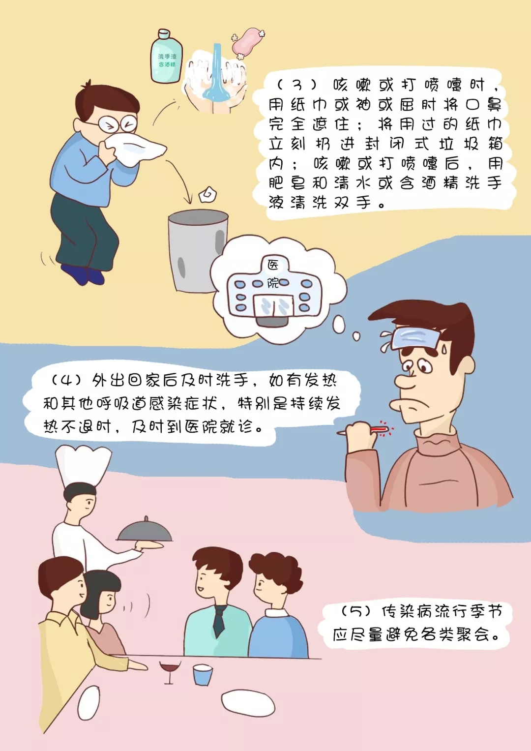 (4)尽可能避免与有呼吸道疾病症状(如发热、咳嗽或打喷嚏等)的人密切接触。