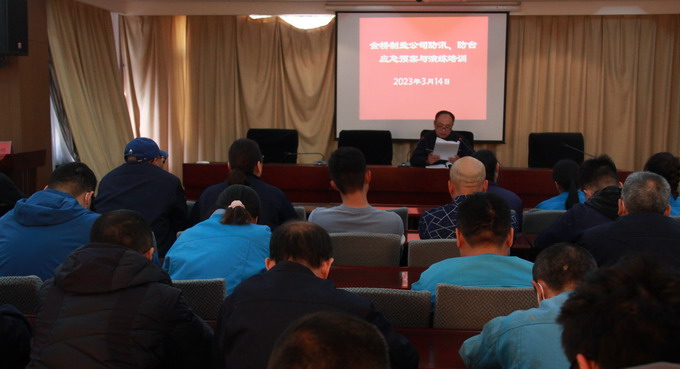 3月14日下午,我公司在三楼会议室召开《公司防汛、防台应急预案》专题培训学习会。培训由公司安全管理部部长陆新好主讲,公司领导班子成员,车间、单位安全工作负责人,部分一线职工,机关全体人员参加培训。