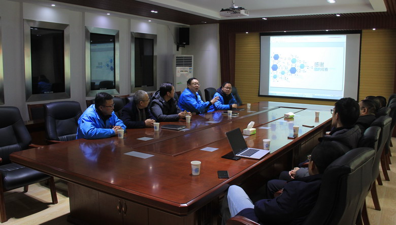 1月3日,半岛平台网站登录入口_半岛(中国)公司董事长杨龙陪同硬核科技公司陆总裁一行到我公司考察调研。公司董事长、党委书记、总经理朱桂玉,副总经理曹开明、张学峰、田磊和总经理助理何启明陪同。