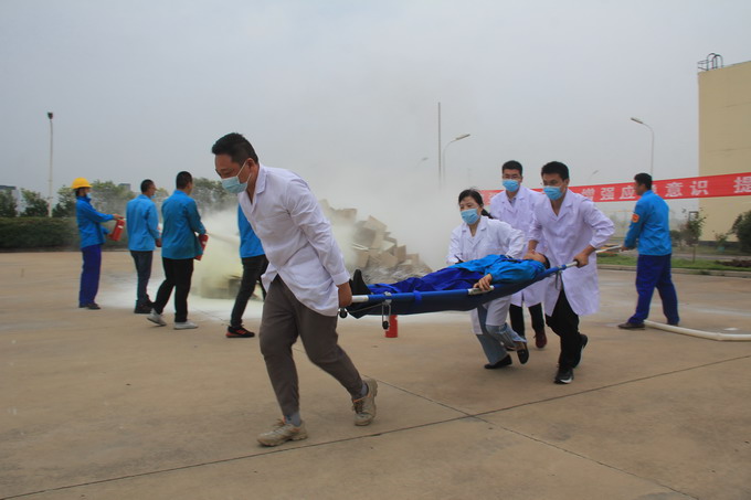 本次演练分为火灾应急疏散演练、消防技能比武和火灾事故应急救援演练三个部分展开。在火灾应急疏散演练中,设定三楼会议室为模拟火灾现场,在滚滚浓烟下,参演人员2分钟内从指定逃生路线规范、有序、迅速撤离到了安全地带。有5支参赛队参加消防技能比武,每支队伍3人,依次进行比赛,发令后,参赛人员按规程接水袋、连水枪、开消防栓、冲向目标、击倒火源点,用时最短者胜出。经过激烈的角逐,最终机关代表队勇夺第一。火事故应急救援演练模拟纸箱库着火,分信息报告、启动应急响应、现场警戒、医疗救护、事故抢险等各处置环节,整个演练紧张有序,过程流畅,达到检验应急预案的可行性和提高应急救援人员的应急处置能力的效果,为完善我公司应急预案提供实践依据。(金安)