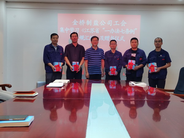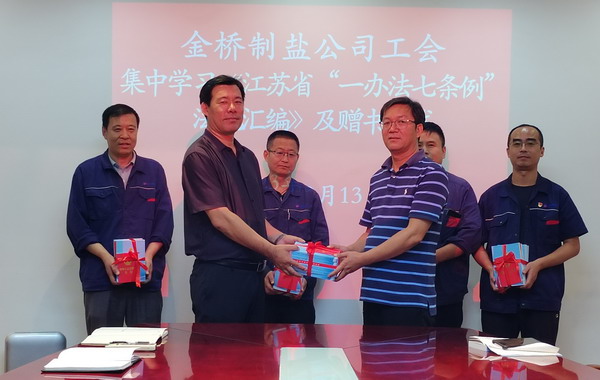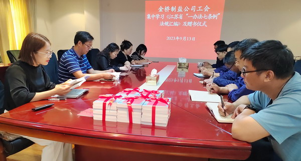 为落实市总及半岛平台网站登录入口_半岛(中国)工会相关要求, 9月13日,我公司工会举办集中学习《江苏省“一办法七条例”法规汇编》活动及赠书仪式。公司工会负责人,各分会、人资部门、安全部门负责人,部分职工代表参加。