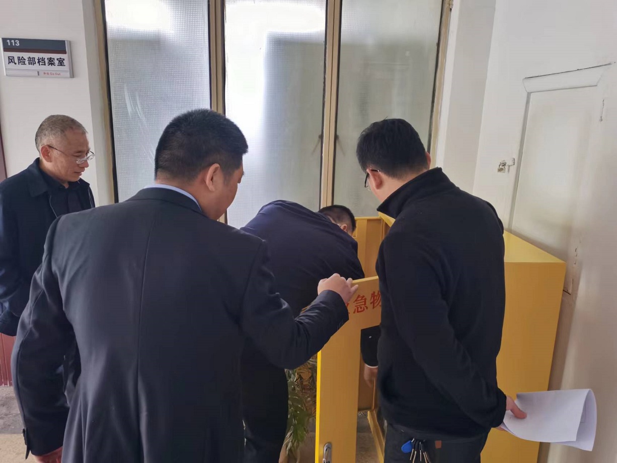 闫超群首先听取了金融板块当前安全生产总体情况、主体责任落实、安全风险评估和隐患防范等方面的汇报,并现场对我公司各重点岗位和区域进行了认真检查。
