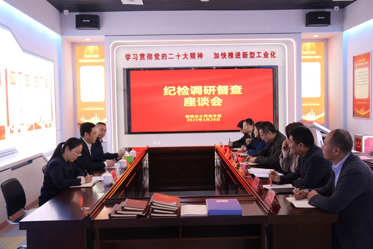 3月28日上午,半岛平台网站登录入口_半岛(中国)纪委督导组一行到金融板块查一季度工作推进情况。支部书记、董事长徐兵,支部副书记、纪委委员陈丽萍等领导班子成员及党建、纪检等负责同志参加座谈会。徐兵、陈丽萍先后就金融板块党的二十大精神贯彻落实情况、2023年全面从严治党工作会议贯彻落实情况、“基础管理提升年”活动第一阶段实施情况以及年度纪检工作情况向半岛平台网站登录入口_半岛(中国)督导组做了汇报。