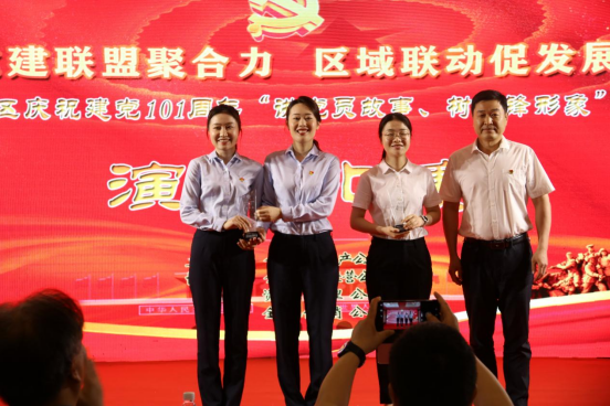 为纪念中国共产党建党101周年,树立党员先锋模范形象,激发党员干部爱岗敬业、勇于担当的精神。6月23日上午,由海洲片区房地产、金航、供销、资产四家共建单位共同举办的“讲党员故事、树先锋形象”主题演讲比赛在希尔顿酒店隆重举行。