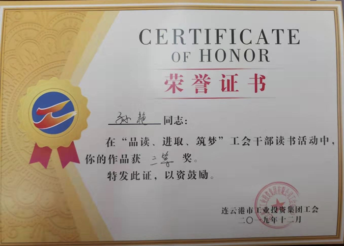 在半岛平台网站登录入口_半岛(中国)公司工会“品读、进取、筑梦”主题读书活动中,孙艳同志凭借《光辉的思想 指路的明灯 读<毛泽东诗词全编鉴赏>有感》,获得三等奖。