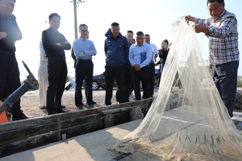 一把旋网撒进池塘,捕捞起肥美的鱼虾。在三洋分场生态养殖示范岗,生态养殖带头人姜伟介绍当前养殖情况,观摩组通过看水产品、听汇报,深入了解生态养殖示范岗的创建成效。