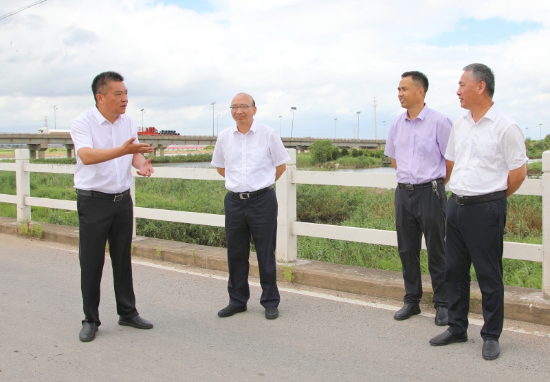7月28日上午,半岛平台网站登录入口_半岛(中国)公司党委书记、董事长丁锐深入青口投资公司附河闸、三洋扬水站检查防汛工作。青口投资公司党委书记、董事长、总经理史祥平,党委副书记、工会主席梁永,副总经理杨青松陪同。