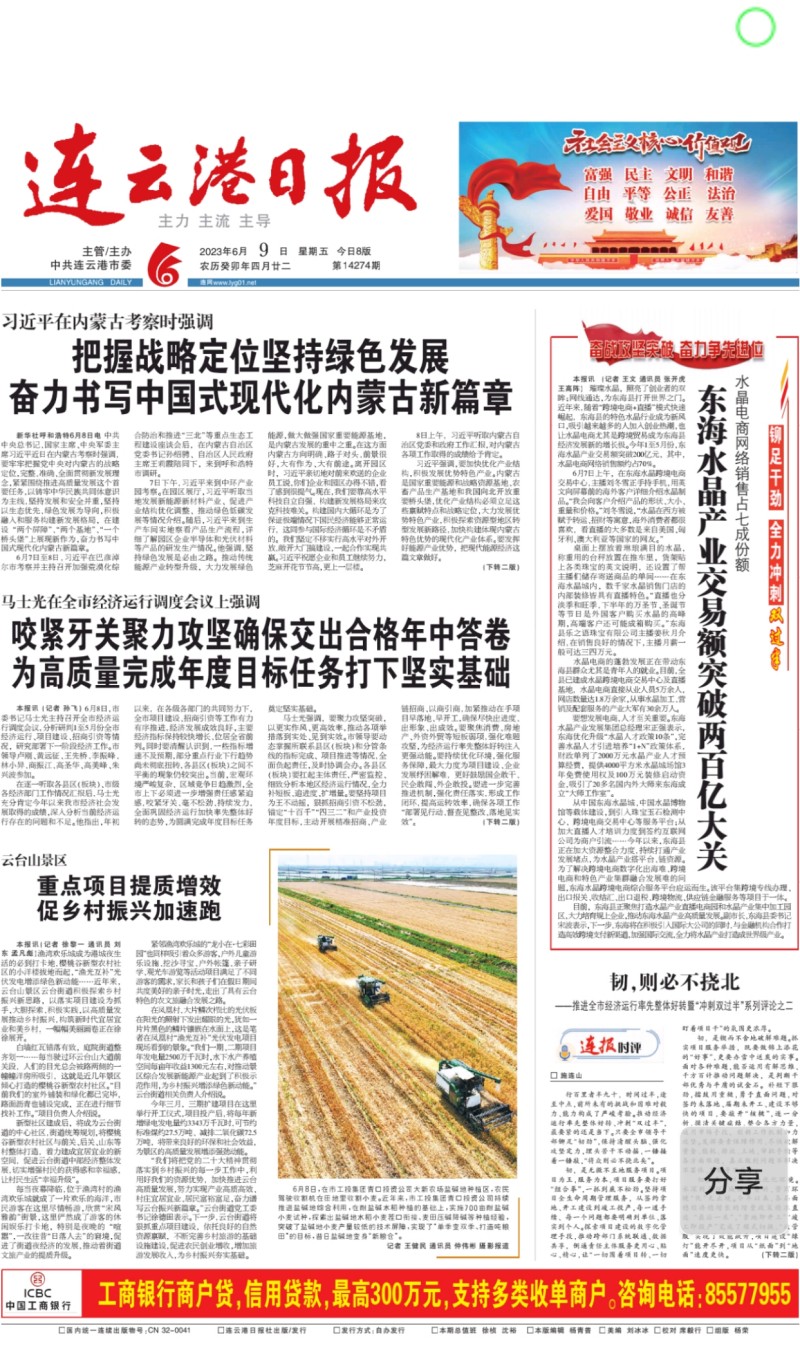 自6月8日麦收工作启动以来,青口投资公司高度重视、精心组织,科学高效调动全方面因素,全力投入耐盐碱小麦收割工作,开创了农业高质发展新局面,受到了中国政府网、人民网、新华社、新华网、连云港日报、苍梧晚报等中央、省市级主流媒体的广泛关注。(青 宣)