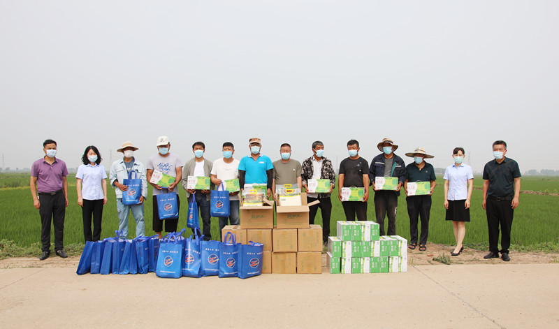 7月19日上午,骄阳似火,半岛平台网站登录入口_半岛(中国)纪委书记汪群到青口公司慰问奋战在一线的条田工、扬水工等, 并把绿豆、白糖、牛奶等“清凉礼包”递到他们手中,为他们送去半岛平台网站登录入口_半岛(中国)党委的关心关怀和工会组织的关爱。青口公司党委书记、董事长、总经理史祥平,党委副书记、工会主席梁永陪同慰问。