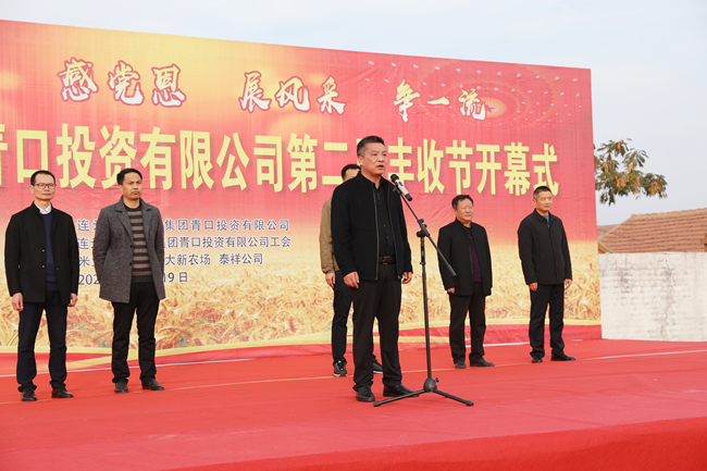 金秋送爽,五谷飘香,11月19日上午,青口投资公司第二届丰收节盛大开幕,公司领导班子成员参加活动。党委书记、董事长史祥平宣布第二届丰收节开幕,党委副书记、工会主席梁永致开幕词。
