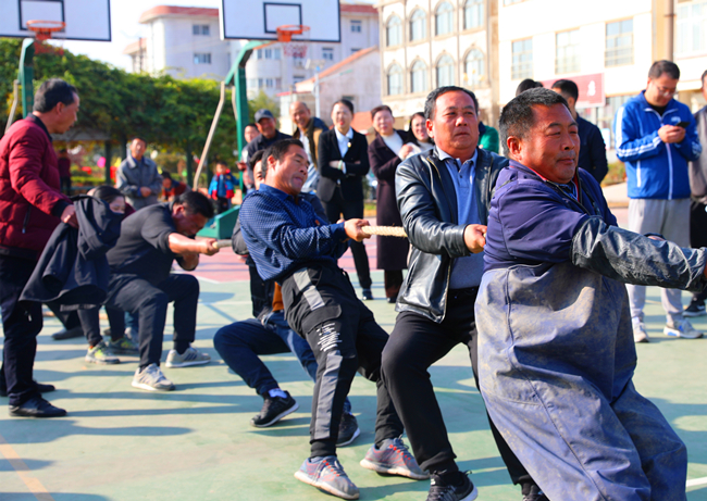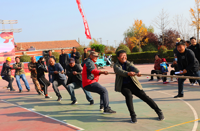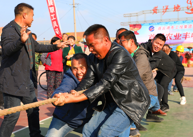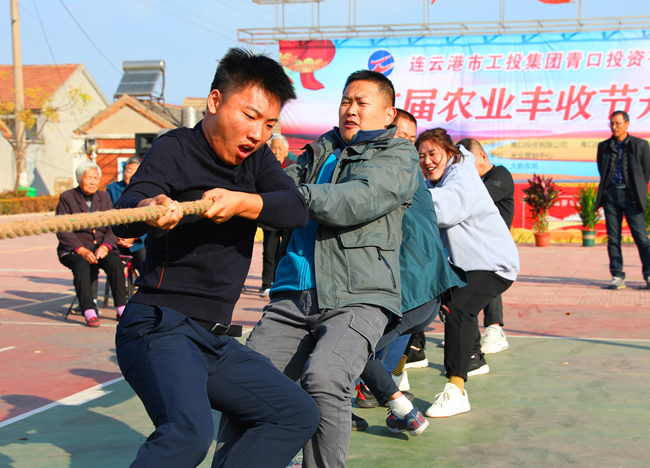 广场上不时传来“加油、加油”的声音,一场激烈的拔河比赛拉开了农业丰收节的序幕。