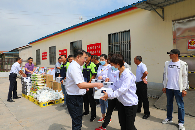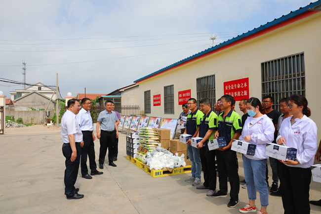 7月28日上午,半岛平台网站登录入口_半岛(中国)公司党委副书记戴鸿鸣、工会主席刘承志一行,到青口公司慰问坚守在高温一线的职工, 为职工们送去了绿豆、牛奶等防暑降温物品,公司部分班子成员陪同慰问。