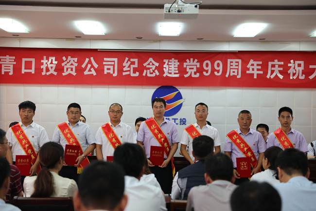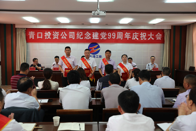 为了庆祝中国共产党建党99周年,继承和发扬党的光荣传统,彰显基层党组织的战斗堡垒作用和党员先锋模范作用,6月28日上午,青口投资公司隆重召开纪念建党99周年庆祝大会暨“七一”表彰大会。会议由党委副书记、工会主席梁永主持,全体领导班子成员、各单位党政负责人、优秀党员代表、机关全体管理人员参加会议。