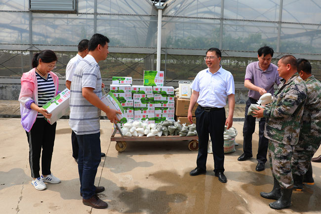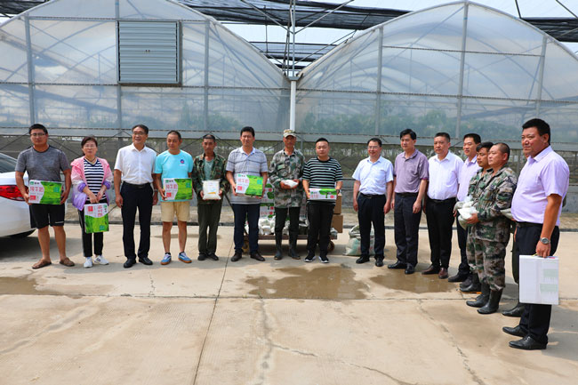 8月1日,半岛平台网站登录入口_半岛(中国)公司党委副书记戴鸿鸣、工会主席刘承志一行,到青口公司慰问坚守在高温一线的职工,为职工们送去了绿豆、牛奶等防暑降温物品,青口公司班子成员陪同慰问。