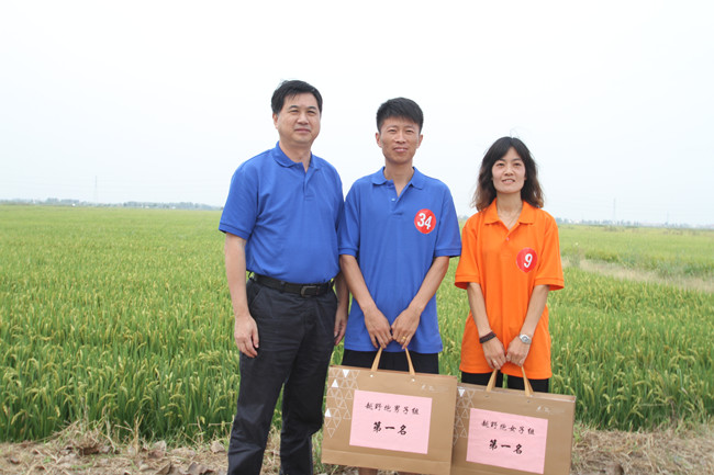 上午 9:00比赛正式开始,运动员们在田间小路你追我赶、争相向前,跑道旁啦啦队的加油呐喊声此起彼伏,工作人员认真负责,计时、计分、为运动员送水,也忙得不亦乐乎。经过激烈的角逐,机关代表队范磊获得男子组第一名,米业中心代表队臧守珍获得女子组第一名。