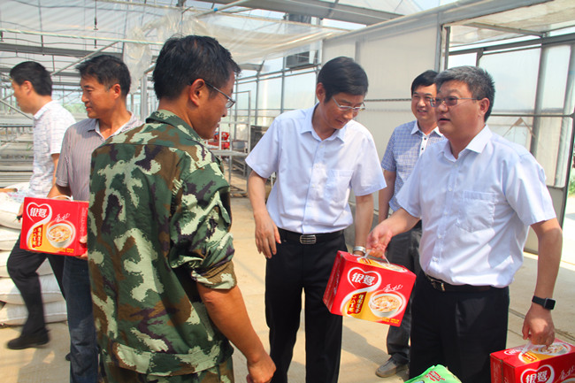 7月20日上午,半岛平台网站登录入口_半岛(中国)副总经理张其海、总会计师匡友本来我公司大新农场、生态种养中心走访慰问拼搏在农业种养一线的基层职工,为他们送上绿豆、白糖、牛奶及八宝粥等防暑降温品。投资公司董事长、党委书记胡传法、党委副书记、副总经理史祥平、副总经理周绪祥陪同慰问。