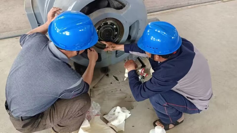 近日,生产生活服务中心立足当前养殖生产用水实际,在抓好供水保障的同时,利用间歇空隙组织人员对三洋扬水站电机进行维护自检,及时维修机组,保障运行安全,全力以赴完成各项工作任务。(严 鑫)