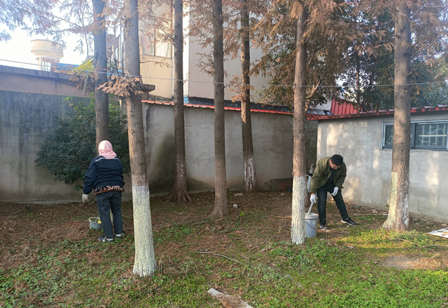 随着天气慢慢转凉,为了减少绿化树木病虫害发生,泰祥公司对场区绿化树木开展冬季“涂白行动”,为保护绿化树木越冬做好准备。