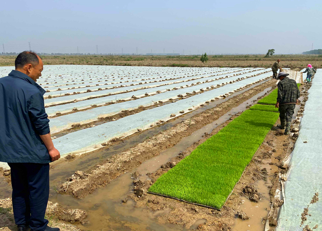 当前水稻生产已全面进入揭膜管理期,大新农场把保苗护苗作为促进稳产增收的一件大事来抓,结合开展创先争优活动,管理人员进入生产一线,督促条田管理工提前做好秧苗管理工作,为下一步插秧序时推进打下坚实基础。(王 璐)