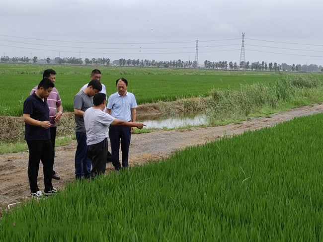 由于近期雨水天气较多,为做好水稻生产管理中期生产工作,近日,大新农场管理人员和农技师深入田间地头,对水稻基本苗的苗情苗量、病虫害情况进行水稻中期生产检查,对下一步的水浆管理和病虫害防治提出指导意见,要求早防早治,适时搁田。(杨杰)