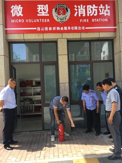 近日,泰祥公司 为了 应对小区突发事件, 提高 全体 员工火灾防范意识 和应对处置能力 , 成立小区微型消防站并对部分员工和保安进行安全知识理论学习培训。 在现场向大家 讲解 火灾相关 消防 常识,以直观、规范的 对灭火操作进行现场 演练,让大家熟练掌握灭火器的正确使用方法,为小区业主的财产、生命安全保驾护航。 ( 赵新勇 )