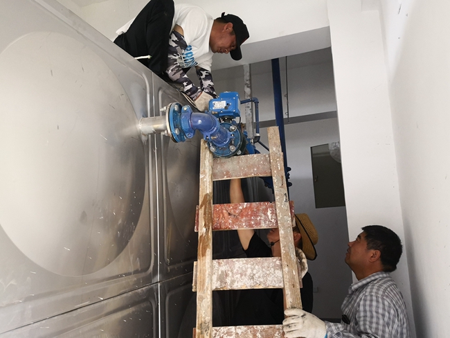 2019年6月3日早晨,自来水班组巡查人员发现小区生活泵房水箱的溢水口有大量清水流出,立即组织人员前往抢修。