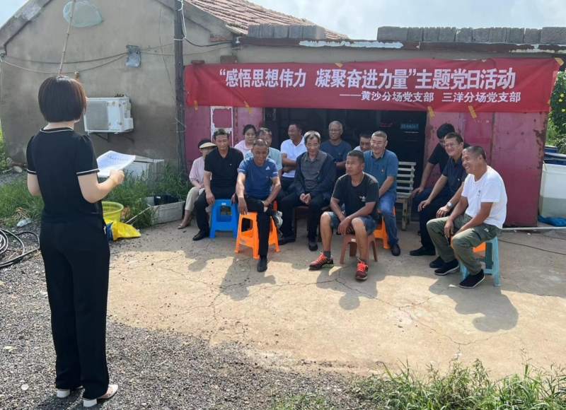 8月1日上午,三洋分场、黄沙分场党支部,在三洋分场生态养殖示范塘联合开展“感悟思想伟力 凝聚奋进力量”主题党日活动,共同学习了《习近平著作选集》