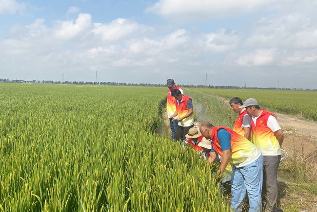 大新农场党支部践行“两在两同”建新功行动,党员志愿服务队深入田间地头,针对近期阴雨天气对部分条田造成的稻瘟现象进行现场“会诊”,因天、因田、因病、因虫开展防控,做到安全用药与防治效果双提高。主动扛起责任与担当,把防病治虫放在心头,为大新农场农业生产提供强有力的技术支撑,为农业稳产作贡献。(大新农场支部)