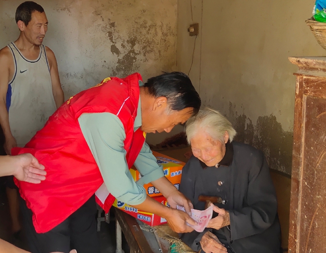 第二部分由支部组织志愿者小分队到长期与智障儿子生活在一起、自身患病行动不便的困难户熊秀美老人家中,开展打扫卫生献爱心活动。劳模党员吕成业在参加打扫卫生志愿活动的同时,个人购买300多元慰问品、捐助现金400元,对熊秀梅、莫排路母子进行爱心慰问。以实际心动践行初心使命、党性宗旨意识。让困难职工群众在切实感受到党组织的关怀与温暖的同时,党员的先锋模范作用得到进一步彰显与阐释。