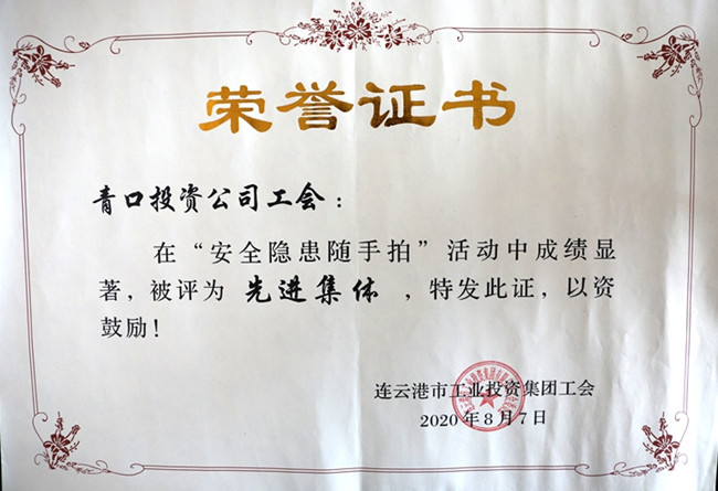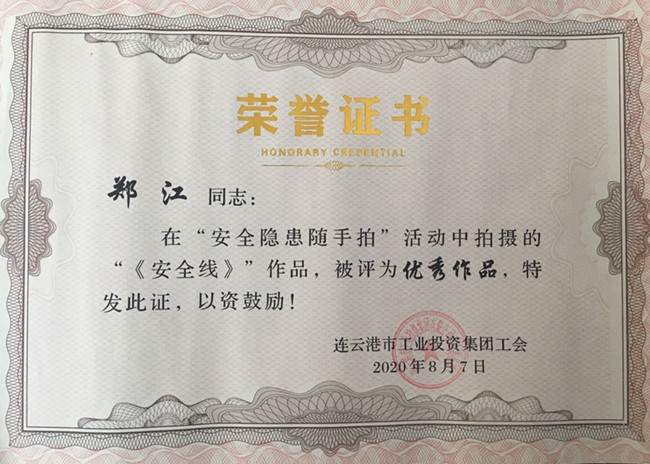 半岛平台网站登录入口_半岛(中国)公司工会5月以来开展了“安全隐患随手拍,合保安康你我他”为主题的“安全隐患随手拍”活动,青口工会广泛宣传,组织广大职工积极参与,期间共收到职工“随手拍”作品近二十件,并上报半岛平台网站登录入口_半岛(中国)公司参加比赛,经上级专家评审,我公司工会被评为“先进集体”,郑江作品《安全线》获得优秀作品奖。