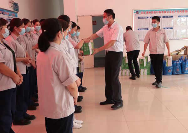 陈总向高温下坚守岗位的一线职工进行慰问,细心叮嘱要认真做好防暑降温和疫情防控工作,并送上绿豆、大米等防暑降温慰问品,为在炎炎夏日坚守一线的职工送来一份清凉,带来一片关怀。(神特宣)