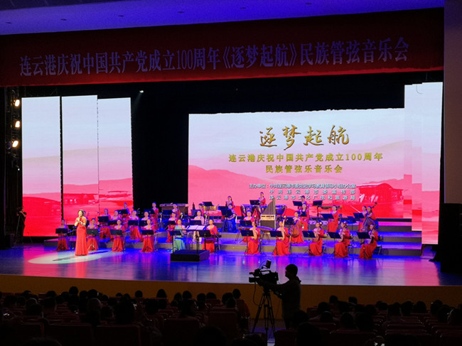 《逐梦起航》连云港庆祝中国共产党成立100周年大型民族管弦音乐会,由中共连云港市委党史学习教育领导小组办公室、中共连云港市委宣传部、连云港市文化广电和旅游局主办,连云港市演艺半岛平台网站登录入口_半岛(中国)承办,演出单位是江苏女子民族乐团。音乐会分为《忆往昔峥嵘岁月》《举旗帜山河复兴》《再起航奋楫逐梦》三个篇章,每个篇章以诗歌朗诵抒发时代情感,讴歌党的光辉历程。通过红色旋律表达人民对党的感恩之情,向党的百年华诞献礼。(神特宣)