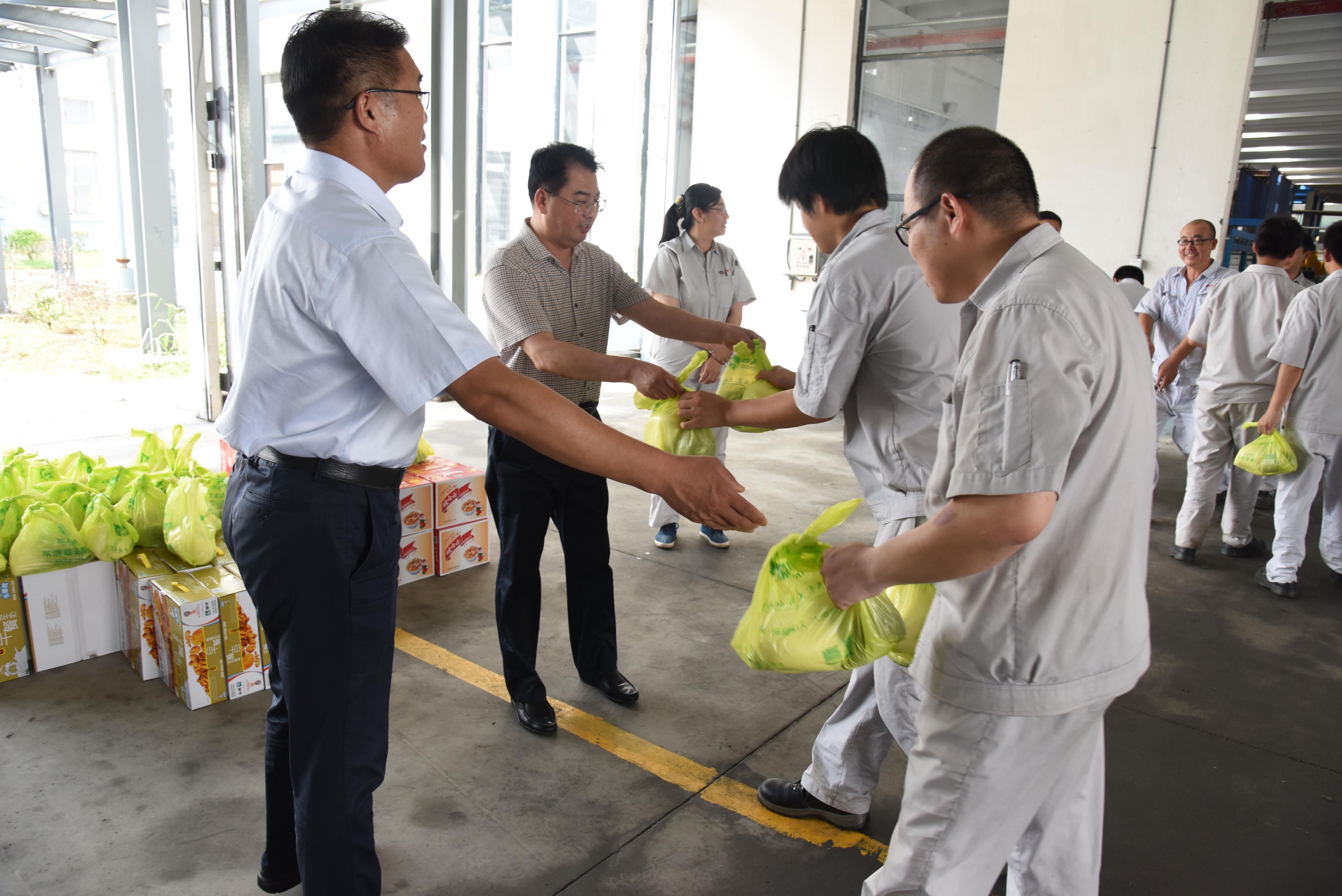 7月19日下午,半岛平台网站登录入口_半岛(中国)公司党委副书记戴鸿鸣、工会主席刘承志一行不顾酷暑高温,深入到神特公司生产一线,为职工送上了牛奶、绿豆等防暑降温物品。戴鸿鸣书记详细询问了生产经营管理及职工的生产、生活等情况;同时督促神特公司要进一步落实防暑降温政策,切实维护职工的健康权益。