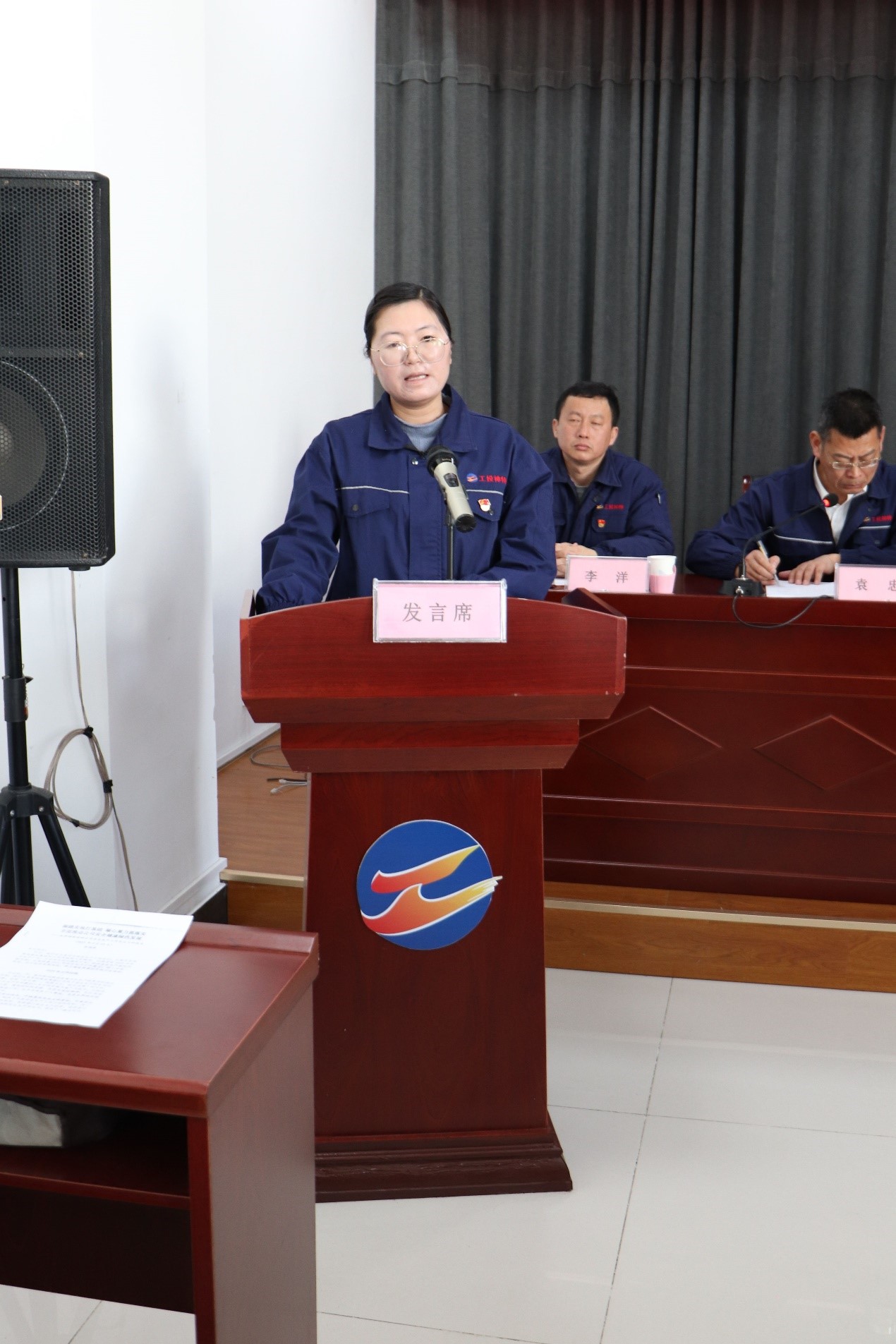 公司副总经理王爽芳宣读“攻坚求突破,转型夺首胜”劳动竞赛意见,生产车间、品质管理部、供应销售部部门负责人作表态发言。