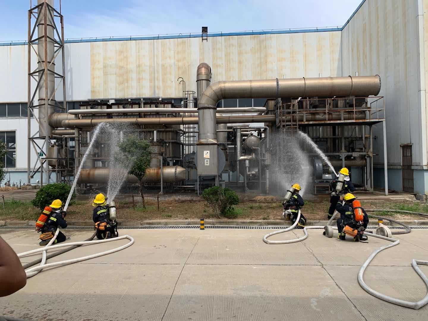 8月12日上午,开发区消防大队到公司开展消防演练,并对公司消防控制室、消防泵房、碳氢罐区及后纺萃取机等消防重点部位进行随机检查,开发区消防大队对公司消防管理工作给予充分肯定。