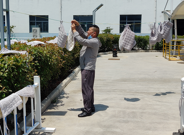 可是最近他有点不高兴。几次大浦片区在公司门外举行的核酸检测,因为时间不凑巧,他总是当不了“大白”。丁师傅是个闲不住的人,这不,夏天到了,食堂坐垫不用了,该洗了,丁师傅说,我来吧,咱当不了“大白”,就当“小白”吧。于是,说干就干,端午节后的周三上午将几十个坐垫拿走认真洗了一番,晾到三号厂房边上的架子上,下班前收好送到办公室,他说,等到晚秋,还要将坐垫绑到餐桌椅子上,“咱老同志做事要有始有终嘛”。(规划发展部