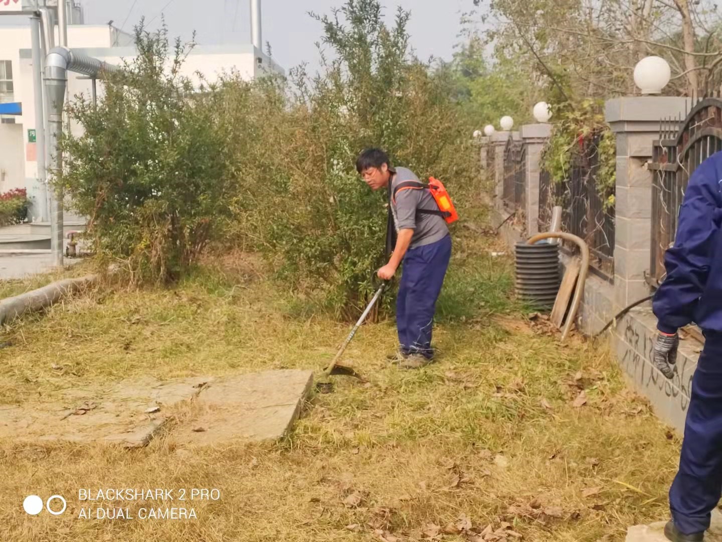 这一提议得到了生产乙班全体党员的积极响应,各党员立马进入车间安排好相应的工作,确保生产安全进行,同时抽调部分员工到污水站集合,大家拿着镰刀、铁锹、耙子、还有割草机,积极参加本次活动。
