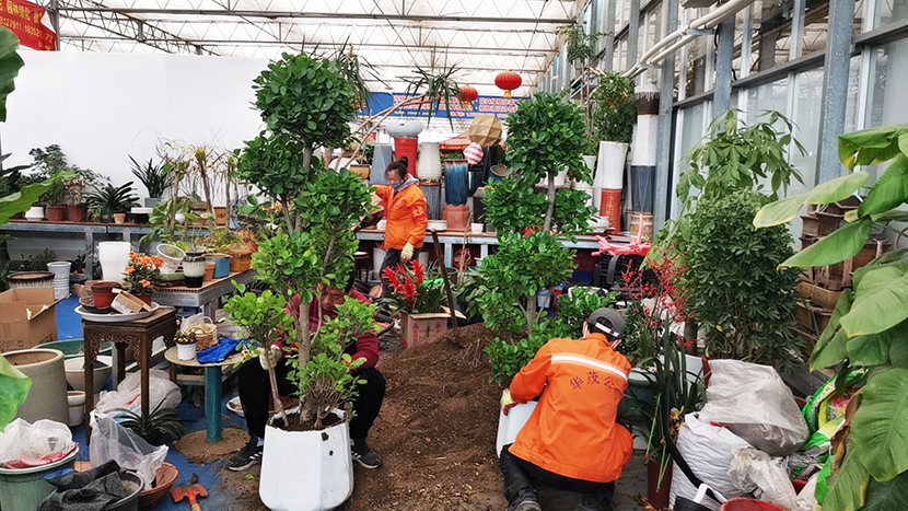 2月24日,走进位于振兴花卉城的华茂园艺项目部,室外冰天雪地,室内忙碌的身影不断穿梭……有的在配土上盆、有的在修剪养护、有的在擦洗装饰,员工们分工协作、团结一心、有条不紊地进行花卉绿植的入盆及制作,开足马力增效益。